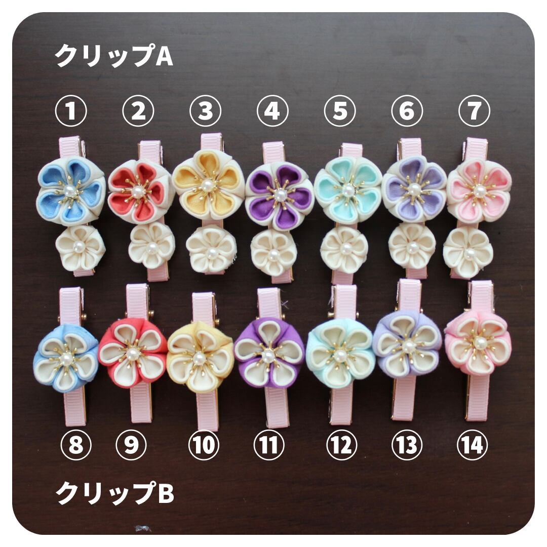 ★クリップA(①~⑦):色付きのお花が1つ・白のお花が1つ